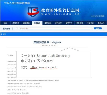 中国教育部教育涉外监管信息网 可查雪兰多大学信息