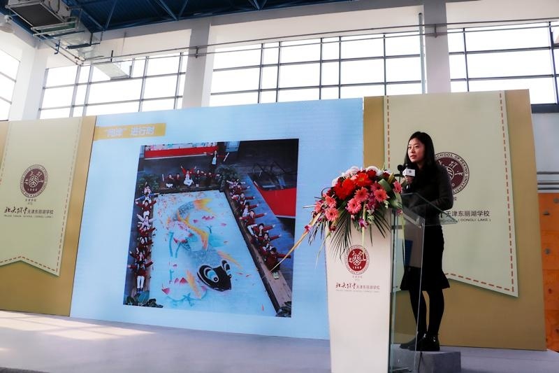 首先,东丽区教育局副局长郭富友先生上台为本次活动致辞,从“促进学生整体素质发展、促进教师专业成长与发展、促进学校课程的创新与发展”等几方面指出了开设综合实践课程的重要意义,并对各学校教师提出希望,认真学习北大附中天津东丽湖学校经验,思考、实践具有本校特色的综合实践课程。