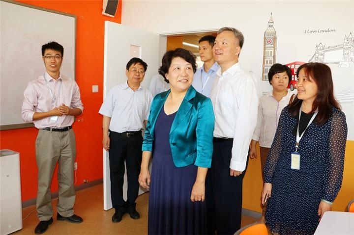 各位领导参观了教学楼,特别是艺术教室、图书馆、英语教室、技术与创造教室等专业教室,也在不打扰学生们上课的情况下了解各班上课时的情景。丰富的课程、多彩的教室,不拘一格的课桌摆放方式、低年级包班制等富有特色的创新教育模式,均给莅临的领导们留下了深刻的印象。其间,张俊芳主任亲切笑谈道,学校的各种设计充分吻合了孩子的天性,孩子们在这样漂亮的教室上课,而且也不用拘束着身体把小手背在后面,肯定非常开心。张俊芳主任也强调指出,北大附中天津东丽湖学校的落成弥补了稍显落后的东丽区教育建设的空缺,同时也昭示着东丽区教育事业发展的美好前景,对我校开学来的情况给予了高度评价,也对我校未来的发展寄予了殷切期望。