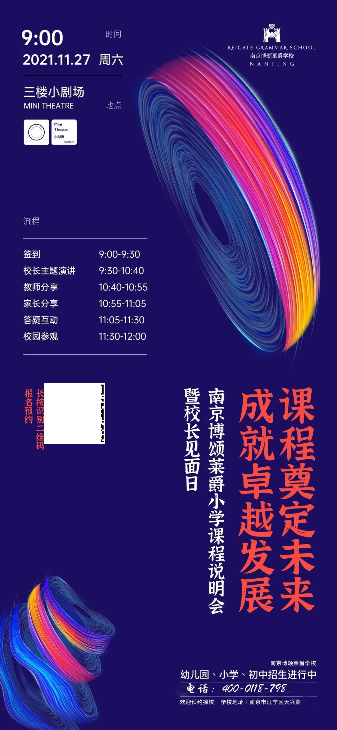 南京博颂莱爵学校是一所从幼儿园到高中的十五年一贯制K-12国际化双语学校,能容纳2400名学生,位于南京市江宁区麒麟高新技术开发区,是由国家开发银行旗下中国新城镇牵头斥资近10亿元人民币,携手英国莱爵公学共同开办。作为莱爵中国所旗舰校,学校占地面积160亩地,建筑面积十万平方米,是中国规模的的海外品牌的双语学校之一。02 英国莱爵公学英国莱爵公学创校于 1675 年,为英国私立学校联盟 HMC 中最古老历史的成员之一。而在此空前的教育盛事之中,芬顿校长是HMC成员中唯一一名亲自访华的校长,他以 HMC 时任主席、英式教育权威的身份,就与国开教育的签约接受了英国泰晤士报的专访,在英国造成了巨大的影响。学业成绩正是的佐证,英国莱爵公学94%的学生A-level项目被评为A*、A或B,大部分学生都获得三个A 级,超过95%的学生收到了牛津、剑桥、罗素大学集团或医学院的录取通知书, 培养了来自英国政界、军方、学术界和艺术界的杰出名人校友。英国莱爵公学的芬顿校长,同时也是南京博颂莱爵学校总校长,他的目标是将莱爵学校打造成为一个具有全球视野和格局的学校。芬顿校长曾任英国名校长联合会("HMC", the Headmasters' & Headmistresses' Conference)主席。去年他因在教育事业的杰出贡献,被授予英国女王OBE勋章。03 课程设置我们小学部课程分为国标课程、启悦课程和延展课程三个板块。课程设置的核心理念是“融合”,从目标、内容、师资、方式、评估等方面全面融合中西教育精粹,融合中西方在知识学习、创造力、适应性、独立性、逻辑思维能力、合作能力、实践能力等方面的综合能力。