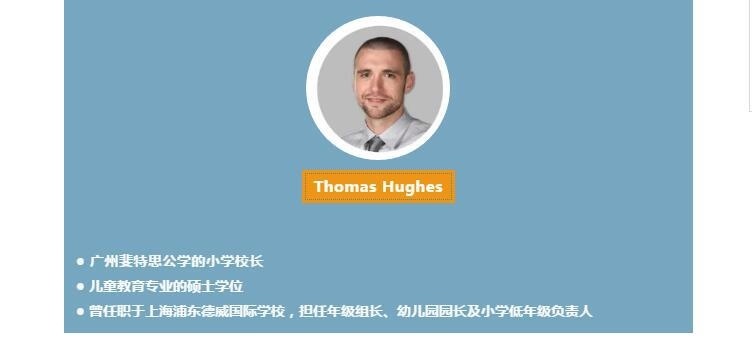 Thomas Hughes说:“我会建立一个快乐的,有活力的校园,教师团队合作无间,学生互相尊重。孩子能成长为自信,自尊的,开心快乐的人。”