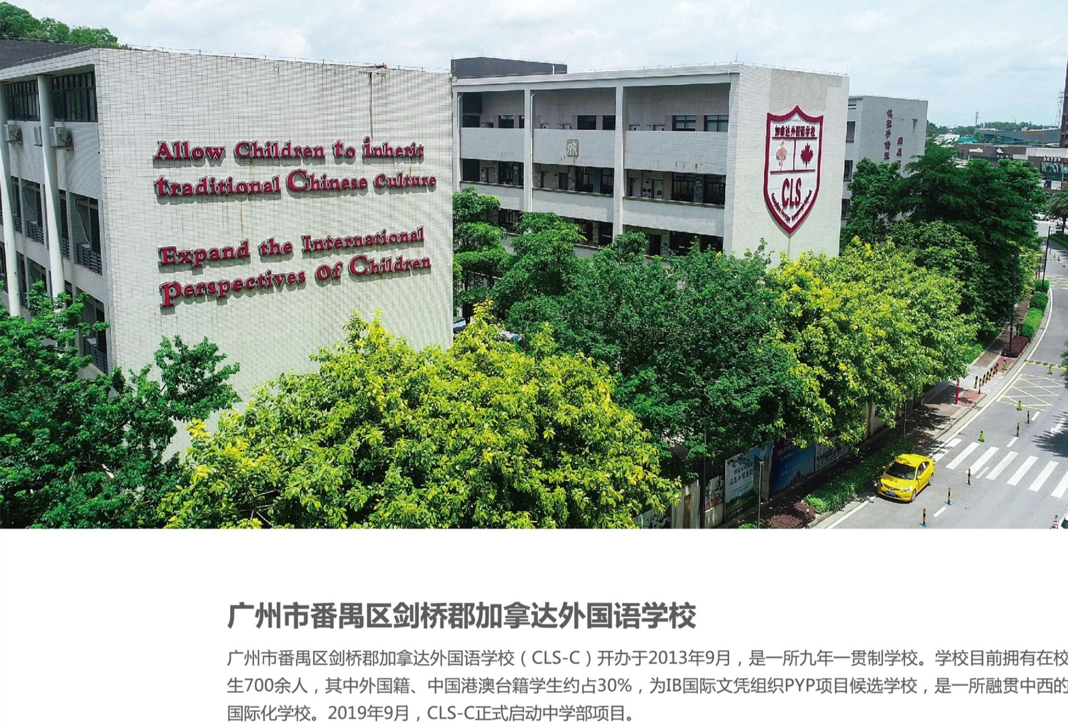 广州市番禺区剑桥郡加拿达外国语学校(CLS) 开办于2013年9月,是一所九年一贯制学校。隶属于加拿大国际教育集团的中西融合民办国际双语学校,2021年5月正式授权为IBPYP世界会员学校。学校目前拥有在校生700余人,其中外国籍、中国港澳台籍学生占比30%,硕士学历教师占比60%,海归教师占比40%,外籍教师占比15%,纯英语学习氛围超过50%,是一所既做好国际教育,又重视成绩的IB学校。2019年9月,加拿达正式启动中学部项目,2021年9月1日成为IBMYP候选学校。