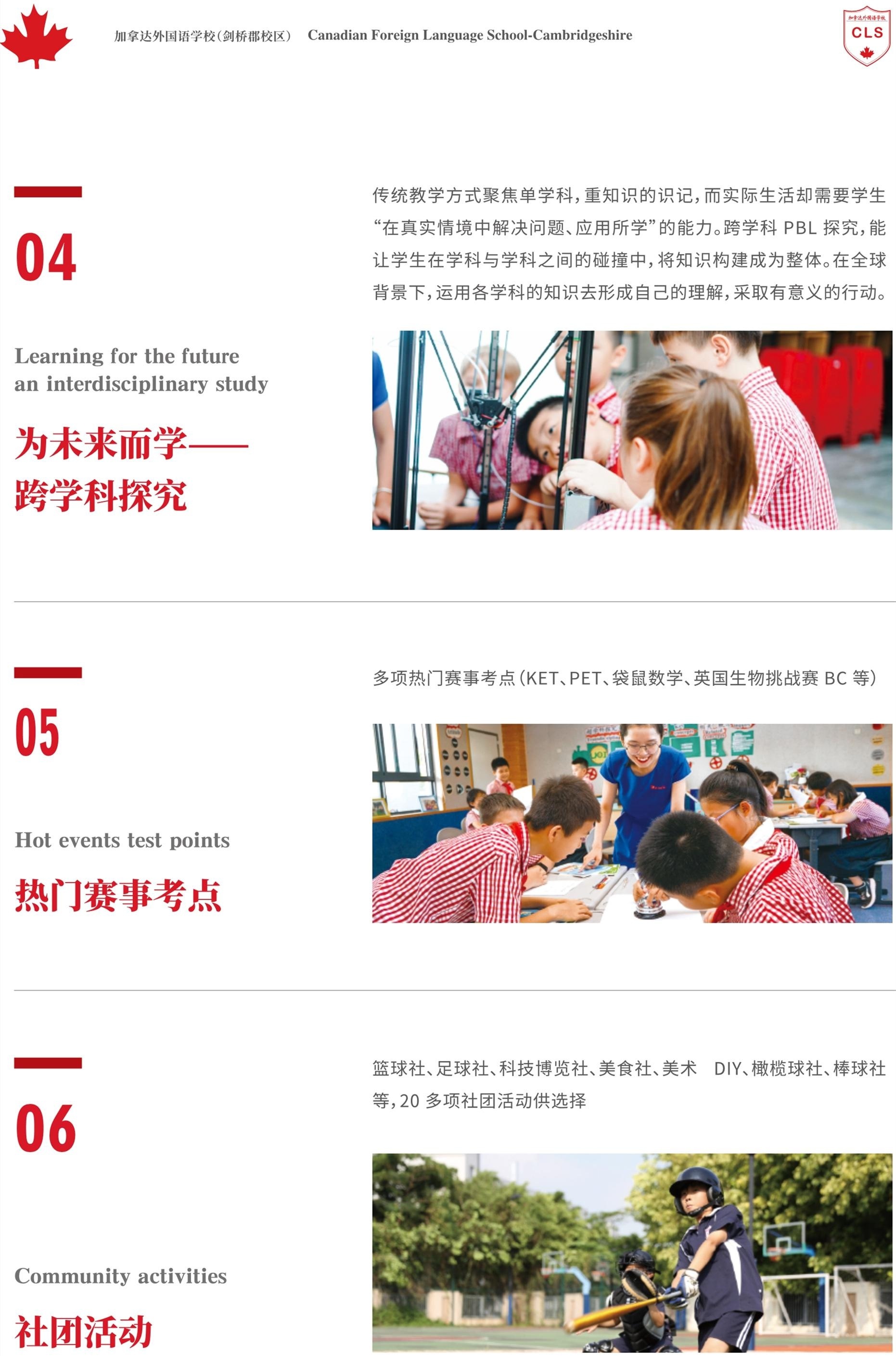 初中阶段:除国家义务教育八大课程、外交语言训练、社团活动、产品设计、行动与服务