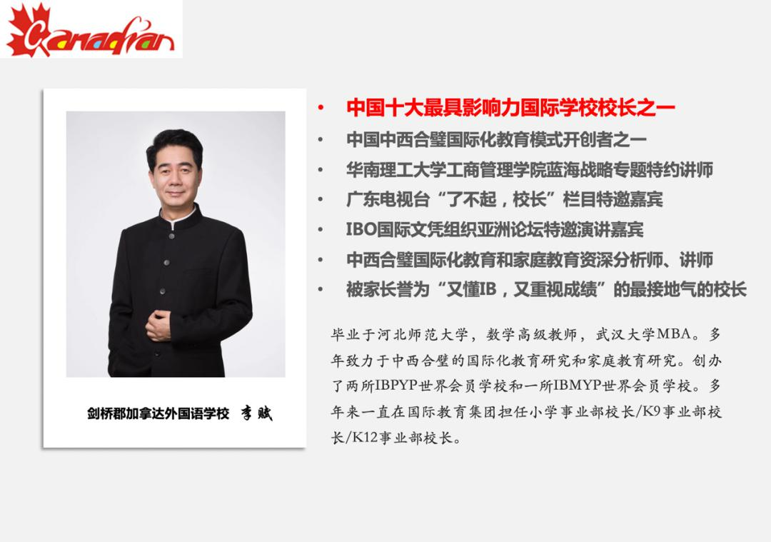 参与分享的家长们不仅正装出席,且毫无保留地分享自己。这里有“一带一路”的重要人物、物理治疗的学术大咖、心有大爱的心灵疗愈课程负责人、医生、国内外知名的美学艺术家、餐饮界的大拿、英语学习的专家等等,跨界的资源在这里分享,在这里碰撞,在这里整合。虽然来自各行各业,但是大家都有一个共同的身份,那就是剑桥郡加拿达的家长,一所不仅做好IB,还重视成绩的学校的家长,一群一心为孩子并且希望彼此成就的精英家长!