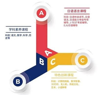 3、丰富的特色课程构成我校特色课程元素的有:计算机网络、数字影像、无人机、3D打印、传统文化、艺术、小语种等。特色课程让同学们在提升学科素养和实践能力的同时,获得才艺展示和团队合作的舞台,保持中国心,又具国际范,对于未来申请学校,积累深厚的文化底蕴和背景提升。4、专业的升学指导及升学保障学生入学后,我们就为每一位学生提供的升学规划方案。树立明确的目标,贯穿整个高中学习。我们拥有众多日本合作的大学及上千成功案例,为每一位学生都找到适合自己的留学出路。5、小班教学、封闭管理优美的校园临近奥林匹克森林公园南门以及冬奥会主场馆,周边环境安全且幽静。学校封闭式管理,24小时管家式服务。10-20人小课堂教学,让家长无后顾之忧!课程体系结合日语及日本留学考试课程,采用小班化的教学方式。课程主要有日语语言课、学科素养课和特色课程组成,团队拥有丰富的教学经验,以学生为中心,因材施教。学校实行全寄宿制生活,提前培养学生的生活能力,为今后留学做好充分的准备。