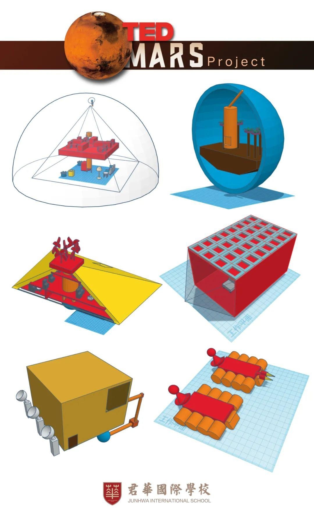 实际上,MARS Project不仅仅是一场TED演讲那么简单,这是一个非常完整、涉及许多学科领域的融合性STEAM项目活动,TED是整个项目的成果展示部分。STEAM社团已经围绕这一主题高速运转了整整一个学期。社团分步骤进行组队、提出问题(火星与地球的差异、生命保障等关键议题)、解决思路、提出观点、形成团队共识、进行3D建模设计火星建筑与火星车、制作演讲课件等多个环节——STEAM社团成员的各项能力都得到了充分锻炼。