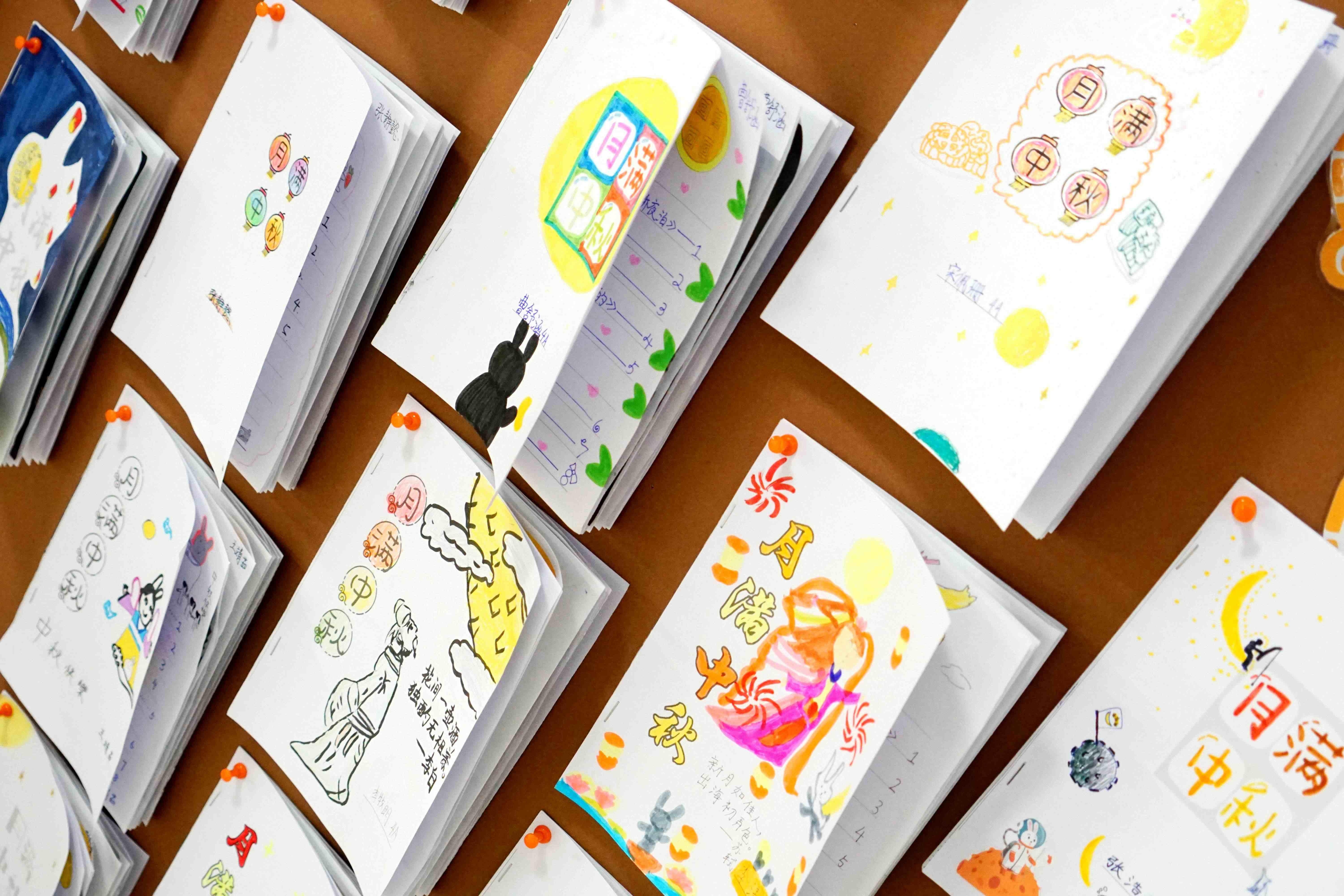 “月亮周”的学习内容既有广度,又有深度,如何将学习的内容进行梳理和整合呢?月亮周作品集应运而生。学生们将自己创作的诗歌,讲述的中秋团圆故事以及诸多学习成果,都浓缩在了一本作品集中,既是对学习内容的梳理,也是学习成果的展示。