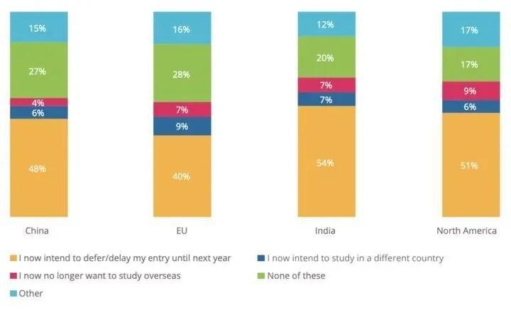不少学生因此改变了留学目的地、延期入学甚至取消了留学计划。