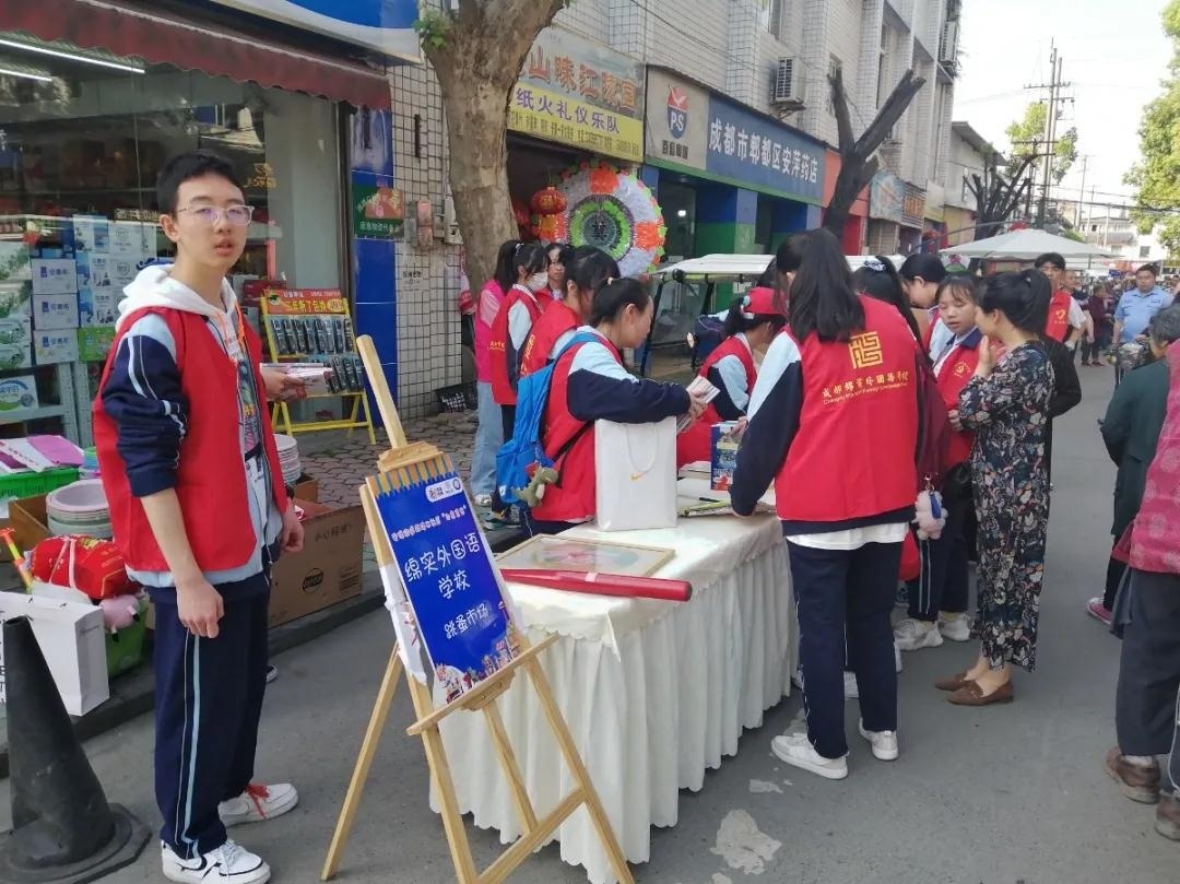 成都绵实外志愿者服务队带着成都绵实外学子独特的“资源”参加安德街道两路口社区举办的“印象集市”活动。
