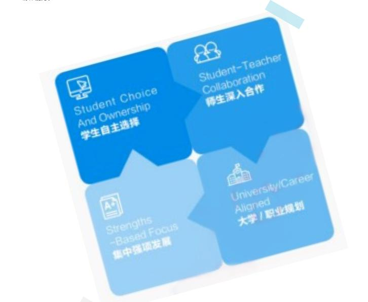 个性化学习路径以学生为中心,紧扣核心课程标准,通过学生、家长、老师多方合作实现化的学习效果。它建立在每个学生的优势,兴趣和价值观上,以个性化的课程选择和学习路径,赋予学生自主选择的权利,拥有自主学习和掌握未来的力量。
