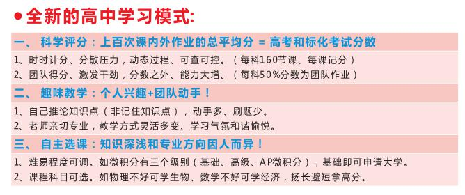根据学期成绩划分加强班和平行班,每班少于25人 。动态分班、行政平分、课程走班。 加强班学生可选修更多加方课程和赛达/AP课程。学生可根据自身情况选修擅长课程。如:数学分三个级别,可自选学到哪个级别。物理、生物、经济、微积分都是选修,这样让孩子尽量修读擅长的课程,呈现好的学习成绩。